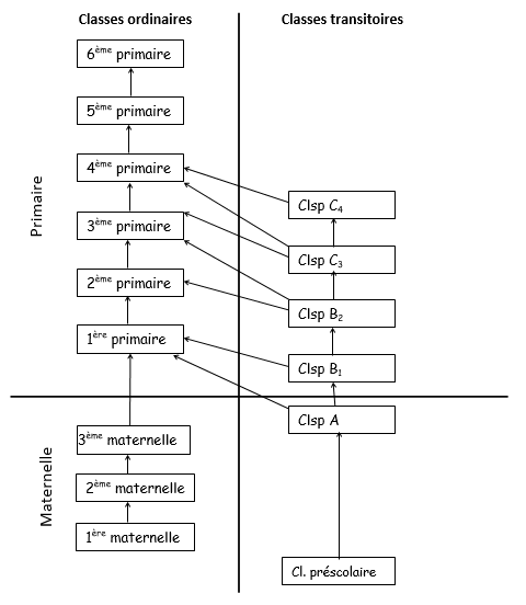 - Classe spéciale C3 : l’enfant qui sortira de cette classe ira en 3ème primaire pour consolider son niveau avant de passer en 4ème primaire l’année suivante ; ou bien, il pourra faire la C4 pour consolider le niveau de 3ème primaire et entamer celui de la 4ème primaire.